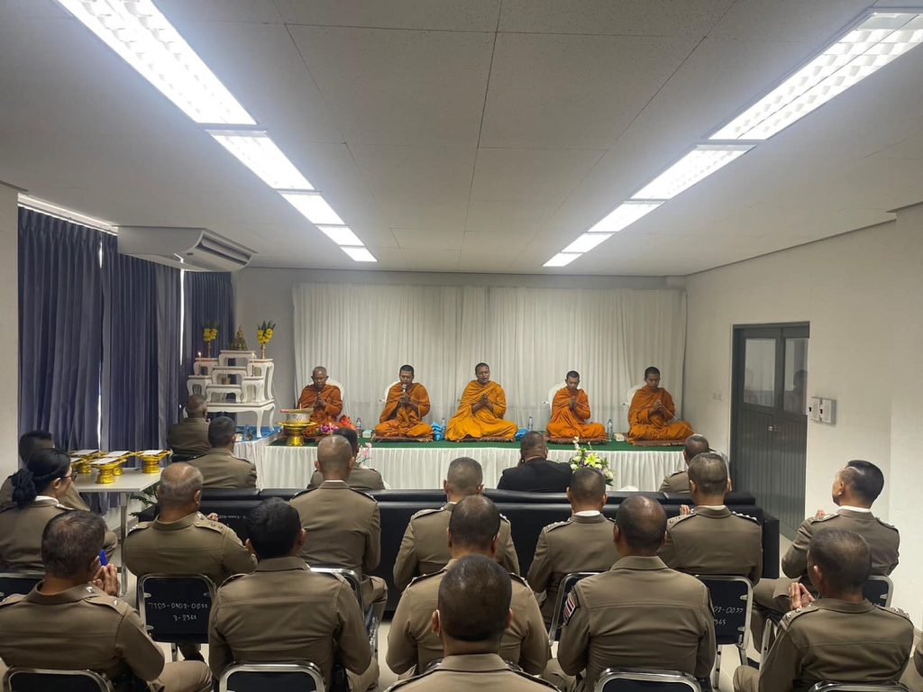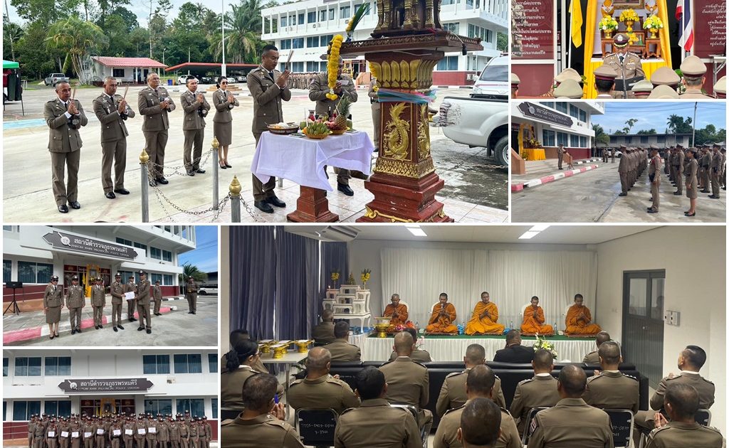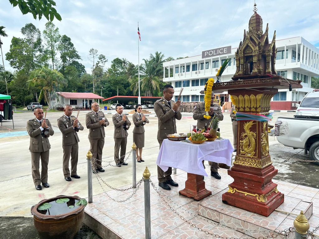 พ.ต.อ.วีระศักดิ์ ศรีทอง ผกก.สภ.พรหมคีรี นำข้าราชการตำรวจ สภ.พรหมคีรี เข้าแถวร่วมพิธีเนื่องในวันตำรวจแห่งชาติ ประจำปี 2566 สักการะสิ่งศักดิ์สิทธิ์ พร้อมอ่านสารจาก ผู้บัญชาการตำรวจแห่งชาติ และพิธีสงฆ์ทำบุญ ถวายภัตตาหาร เจริญน้ำพุทธมนต์ เพื่อความเป็นศิริมงคลและเป็นขวัญกำลังใจแก่ข้าราชการตำรวจที่ปฏิบัติหน้าที่ ณ ลานเอนกประสงค์หน้าสถานีตำรวจและห้องประชุมสถานีตำรวจภูธรพรหมคีรี 2 ม.1 ต.พรหมโลก อ.พรหมคีรี จ.นครศรีธรรมราช
