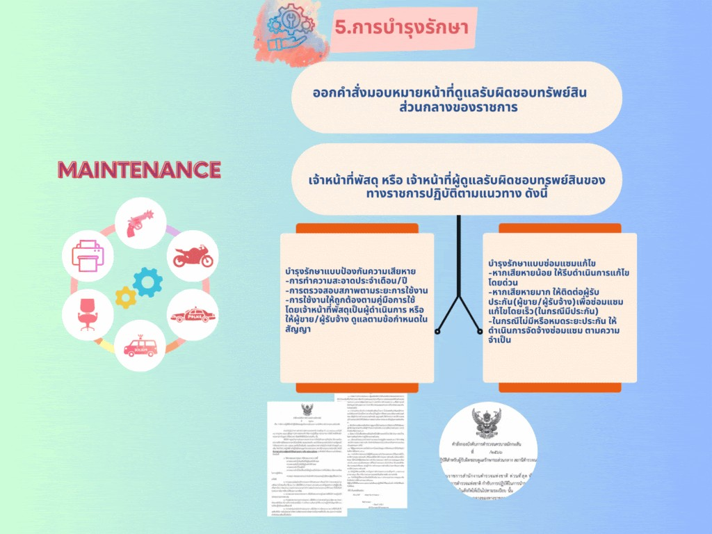 2.กำหนดแนวทางควบคุม กำกับดูแลรักษา ตรวจนับ ตรวจสอบสภาพการใช้งานทรัพย์สินของราชการ ของบริจาคโดยเฉพาะทรัพย์ประเภทที่มีความเสี่ยงในการนำไปใช้โดยมิชอบ